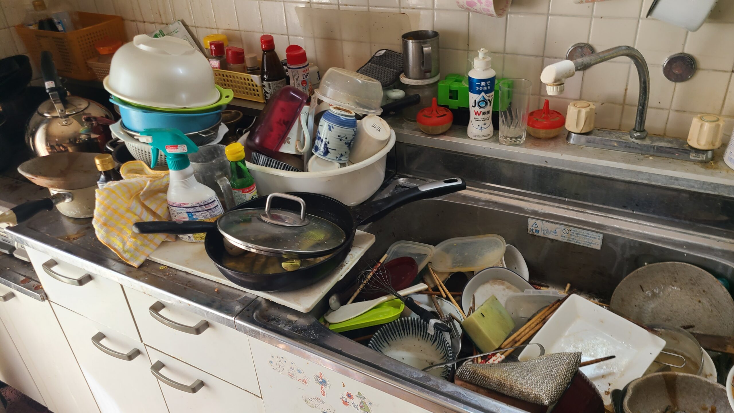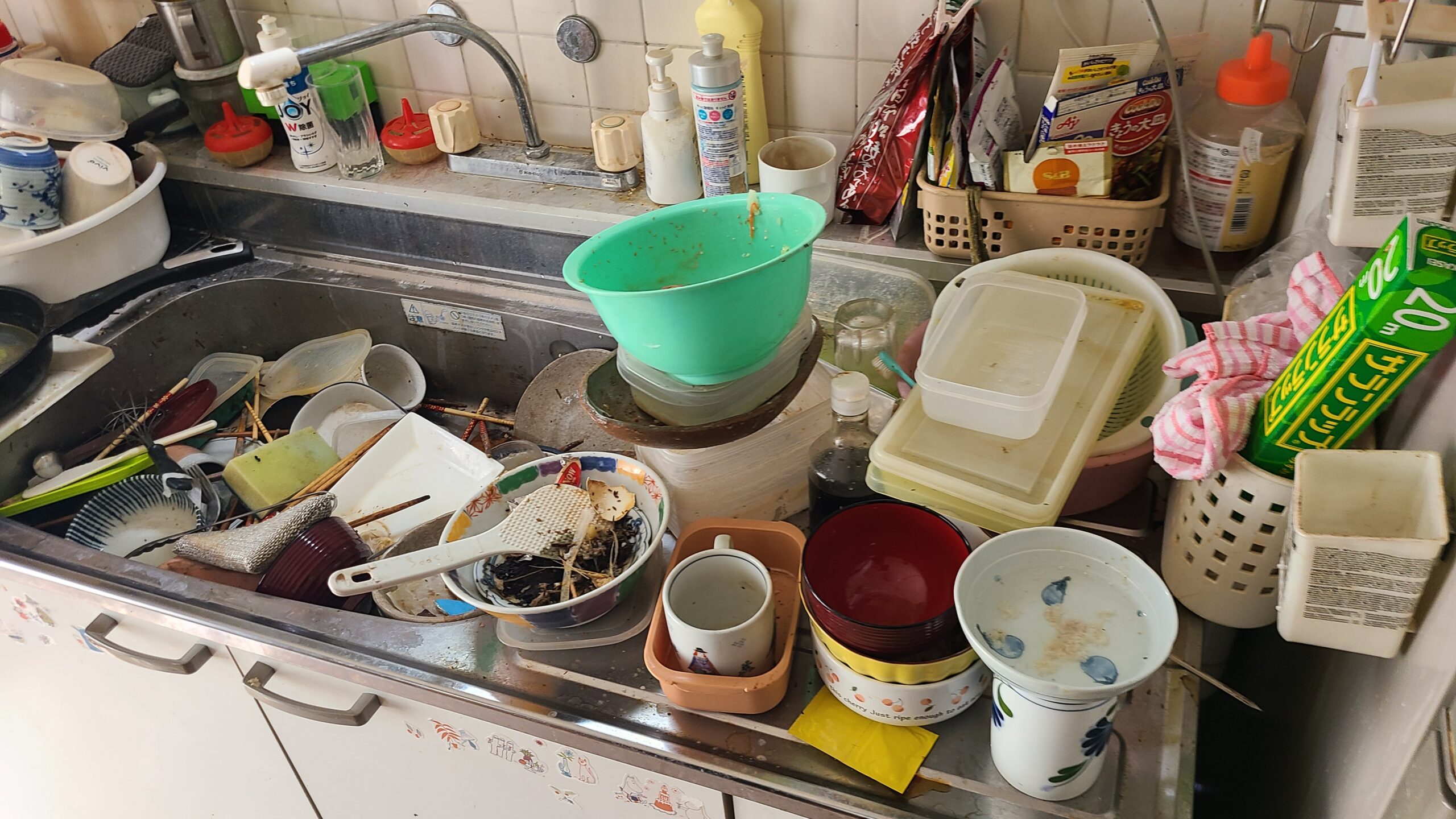 キッチン周りは食べ終わった後の洗っていない食器や腐った食べ物で散乱しており